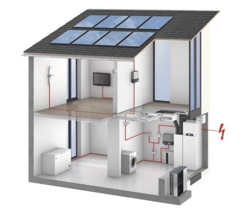Through a heat pump, the existing thermal energy is recovered from the outside air and passes it through a circuit filled with ecological refrigerant. An exchanger will be in charge of transmitting the energy generated to the heating circuit and domestic hot water of the house. 75% of the energy provided by aerothermal energy comes from outside air and only 25% comes from electricity consumption.